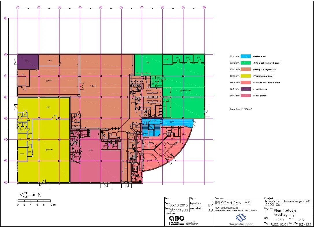 Irisgården første etasje vender ut mot fjorden med god parkeringsdekning for handlende kunder er leietakere som Vinmonopolet, Vitus Apotek, NMS Gjenbruk og Energi Treningssenter godt etablerte virksomheter.